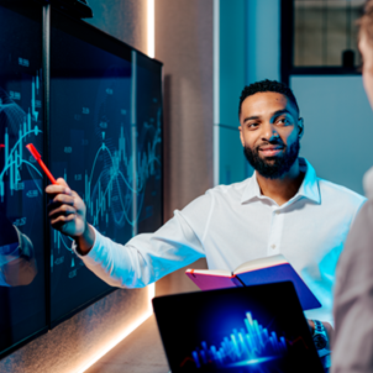 In deze master leer je hoe je AI-oplossingen ontwikkelt en borgt binnen een organisatie. Je adviseert over implementatie en neemt daarin expliciet de 'menskant' mee. Daarnaast onderzoek je hoe technologie past bij bedrijfsdoelen, hoe je draagvlak creëert bij medewerkers en hoe je verantwoord omgaat met privacy en ethiek. Daarbij werk je aan concrete projecten die je zelf kunt inbrengen of die afkomstig zijn van partners uit het mkb en de regio Haaglanden, zodat je wat je leert direct in de praktijk brengt. Je leert hoe je als AI-translator collega’s begeleidt bij het verantwoord en slim gebruiken van AI-toepassingen, zodat innovatie ook écht landt in de organisatie.